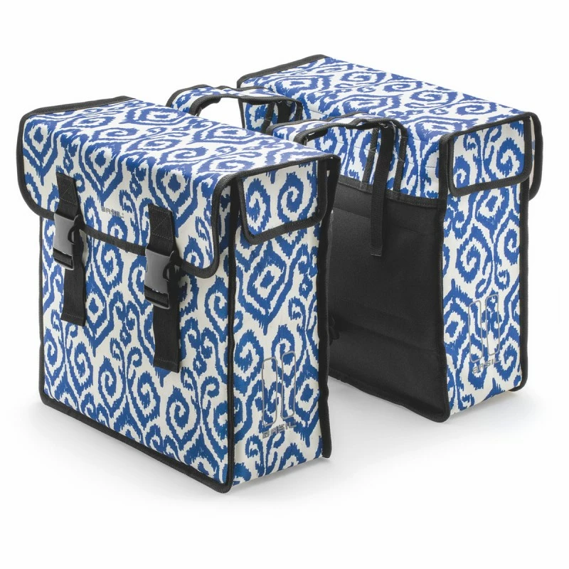 Paire de sacoches doubles pour vĂ©lo bleue et blanche Ă motif – Basil