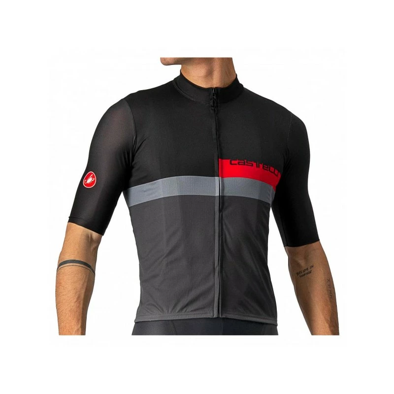Le tissu principal ProSecco Micromesh assure légèreté et séchage rapide les panneaux latéraux perforés améliorent la respirabilité et la conception des manches, sans coutures dans le bas, assure un confort inégalable. La fermeture éclair YKK® et la structure des poches arrière, qui reproduisent fidèlement les caractéristiques des maillots de compétition de notre équipe du WorldTour, viennent compléter le modèle A Blocco.