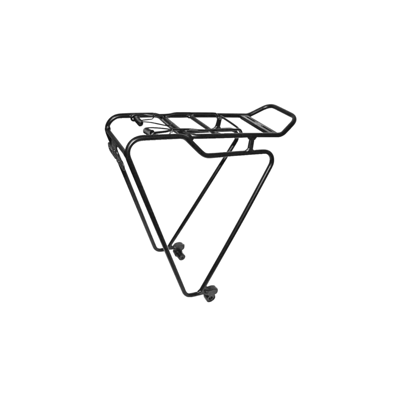 Avec les vĂ©los à freins Ă disque, la plupart des porte-bagages ne se monte pas sans accessoires. C’est l’inverse du porte-bagages Comus qui se fixe directement au vĂ©lo. Sa gĂ©omĂ©trie de tubes se met autour du frein Ă disque de l’arrière, ainsi le porte-bagages reste Ă©troit et stable. Le PB se fixe au moyeu Ă l’aide du blocage rapide livrĂ© avec.