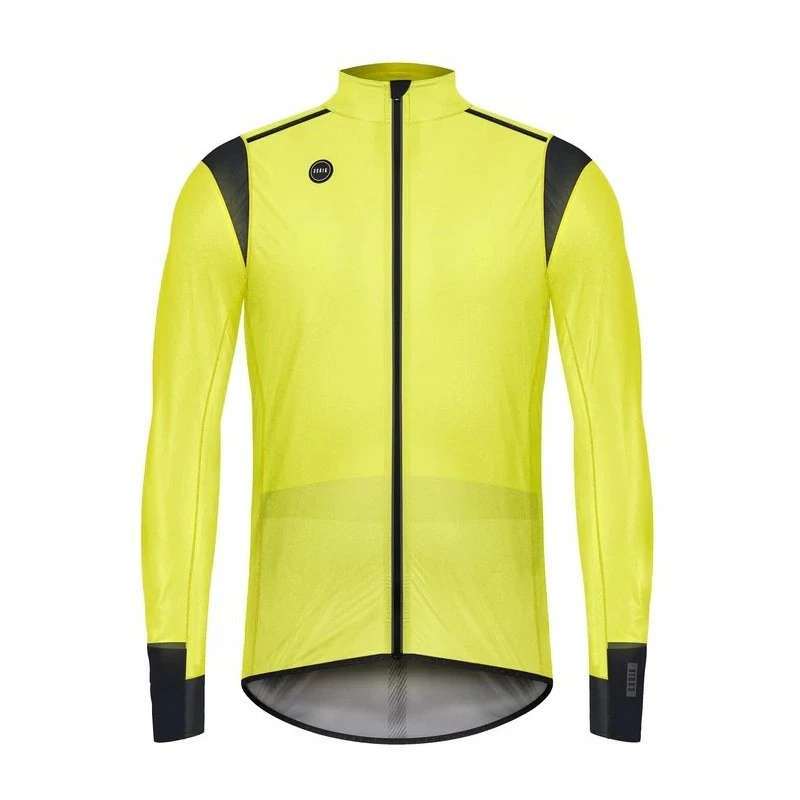 Veste de pluie ultra-légère pour le cyclisme sur route. Version haute visibilité.