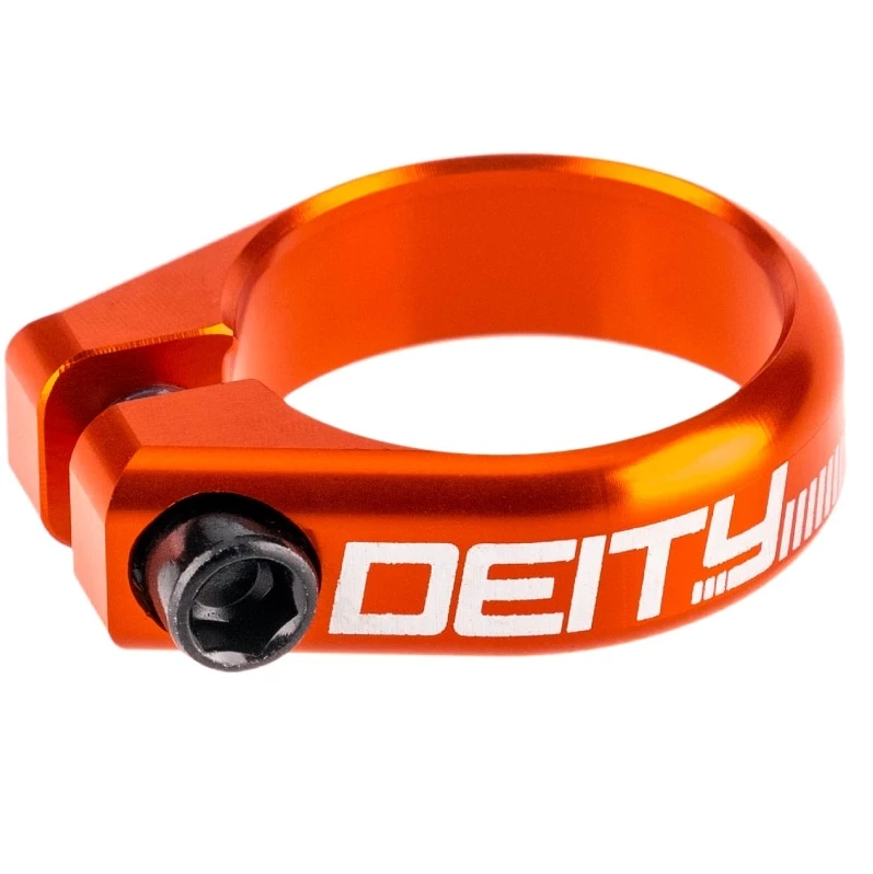 Le collier de selle Deity Circuit Clamp bénéficie d’un design simple et épuré. Ici en couleur Orange, il est disponible en diamètre  34,9 mm / 36,4 mm et 38,6mm. Fixation par écrou pour un serrage plus fiable et efficace.