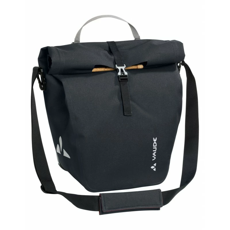 Cette sacoche cycliste urbaine avec fermeture par enroulement et poignée en bambou. La matière résistante à aspect textile est totalement sans PVC et soudée de manière étanche ce qui rend l’utilisation d’une housse de pluie inutile. Le design de la sacoche est épuré et elle est équipée d’un grand compartiment principal avec soufflet d’élargissement et d’une petite poche zippée. Ces sacoches sont fixées à droite et à gauche du porte-bagages arrière et stables grâce au système QMR 2.0 et à une plaque rigide. Elles sont ajustables à l’aide de petites roues et peuvent rapidement et facilement être fixées et enlevées.